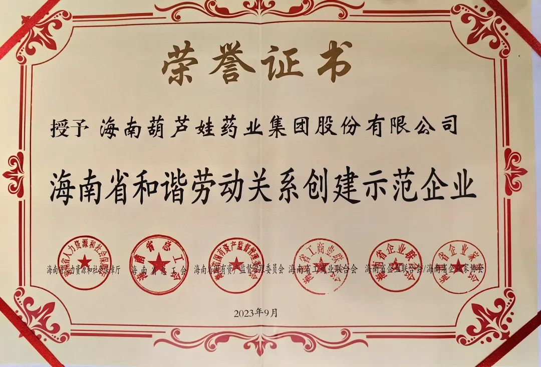 尊龙·Z6药业集团获评“海南省和谐劳动关系创建示范企业”
